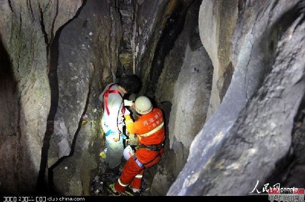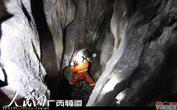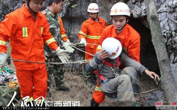 2013年11月14日上午8时许,广西都安县下坳乡光隆村村民龙先生外出散步,在经过下坳敬老院附近时,发现路边有一个乌黑的山洞,由于好奇,便前往查看,走近洞口一看,里面一片漆黑,突然听到洞低传来声音“救命啊,我肚子好饿,快救我……”图为11月14日,一名男子在掉进8米深的洞穴中被困9天后被救出。在被困的这8天里他一直以吃垃圾维持生命。
