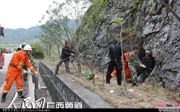 都安县消防大队接到求助电话后,立即派遣救援官兵前往现场救援。10时49分,救援官兵到达现场,经现场查看地形,猜测男子应该是不慎跌落一个由巨石组成的石缝洞。整个洞犹如一个瓶子,洞口宽不到1米,深约8米,洞下面部分相对于比较宽大。石缝洞里很多生活垃圾和玻璃碎瓶,碎石块也较多。