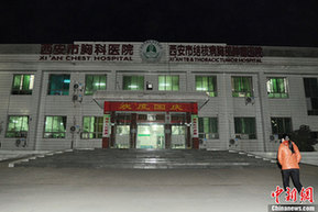 11月20日上午,西安市结核病胸部肿瘤医院发生一起患者砍伤医生事件。据院方介绍,患者王某在该医院检验科采血处插队,被医生制止后心生不满,遂拿起旁边施工用的铁抹子将医生打伤。目前,王某已被公安机关带走,事件正在调查处理之中。图为该医院主楼。中新社发 张远 摄