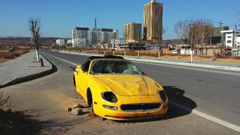 这辆价值百万元的跑车,如今落魄到这份田地本报记者李敏摄