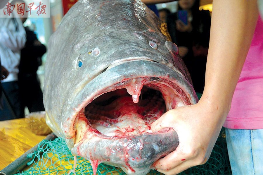 近日,北海渔民在北部湾海域捕获的105公斤的龙趸。