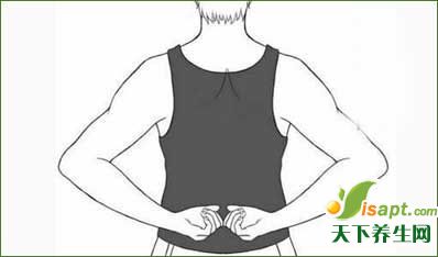 两手反叉腰,拇指放于前方,其余四指自然落在腰上。用落在腰上的四指向外抓擦皮肤。两手同时进行,各抓擦36次。