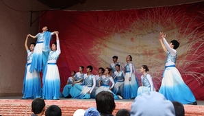 中午12点半,演出正式开始。来自市歌舞团的40余名文艺工作者和演职人员带来了《欢庆》、《桃夭》、《战马奔腾》、《彝族舞曲》、《红红的太阳升起来》等14个精心准备的节目,节目囊括舞蹈、男女声独唱、器乐演奏、快板等形式,内容多样,精彩纷呈。歌伴舞《红红的太阳升起来》掀起了演出的高潮,我市著名男高音杨涛热情高亢的歌声赢得现场观众阵阵热烈的掌声。演出现场,欢声笑语自始至终连成一片,欢乐喜庆的氛围深深感染着杨家寺乡的父老乡亲。