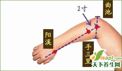 (1)取坐位,家人用拇指指端持续压按肩井、手三里、关内、合谷穴各1分钟。
