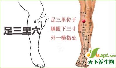 3、再一个就是足三里。足三里既能补脾胃之气,又能补元气。上文说过,水谷之气是气的一个重要组成部分,靠脾胃运化而来,所以补气用足三里是必不可少的。用足三里保健,最好是艾灸,每次用艾条灸20~30分钟,可以经常灸它。