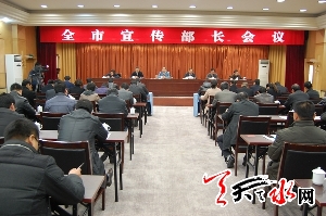 天天天水网讯【记者孙燕芸】全市宣传部长会议12月11日下午在天水迎宾馆召开,会议对学习宣传贯彻十八届三中全会精神进行再安排,传达学习全省宣传部长议精神,部署下一阶段宣传思想文化工作、华夏文明传承创新区建设和文化产业发展工作。