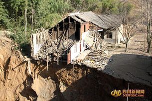 四川广元现直径60米天坑 地陷致11间房被埋