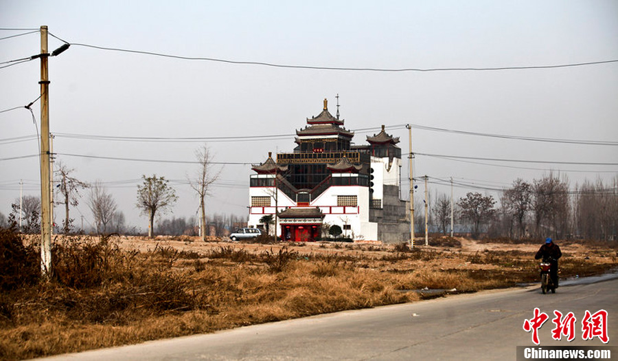 12月12日,西安市未央区未央宫街道东叶寨村。该村整体拆迁后,只留下了这幢5层高的仿古建筑。黄利健 摄 图片来源:CFP视觉中国