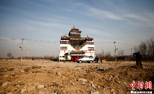 12月12日,西安市未央区未央宫街道东叶寨村。该村整体拆迁后,只留下了这幢5层高的仿古建筑。黄利健 摄 图片来源:CFP视觉中国
