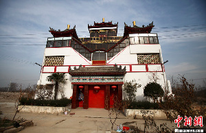 走进未央宫街办东叶寨村,就看到不远处竖立着一栋别出心裁的建筑物。“那是民宅,建得和皇宫一样。”路过的一些村民说。走近该建筑看到,这栋高30多米、宽30多米、长40多米的房子,采用仿古设计,但上半部分采用玻璃外墙,又富有现代感。