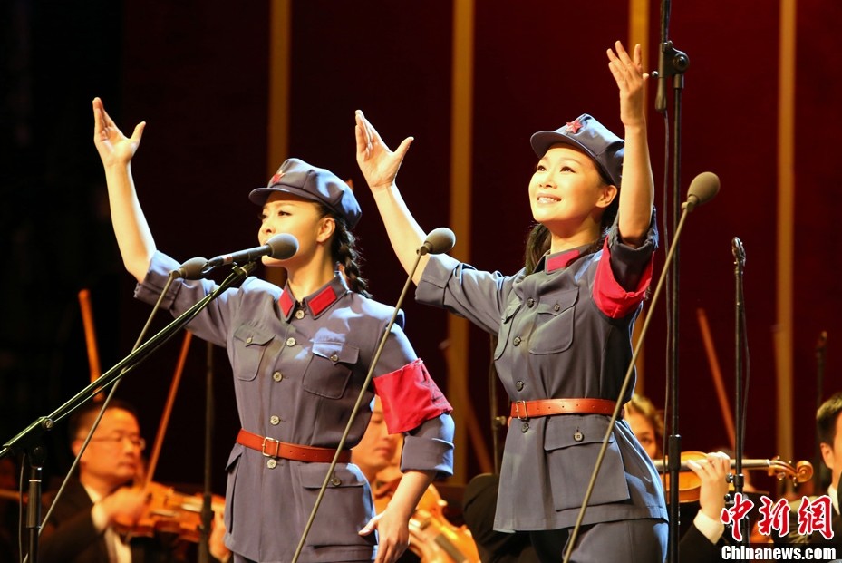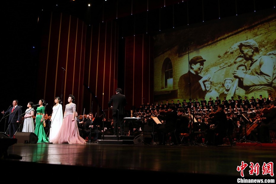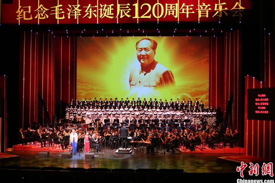 12月25日晚,《人民的毛泽东》纪念毛泽东诞辰120周年音乐会在国家大剧院举行,上千名首都各界群众共同观看了这台音乐会。据悉,该场音乐会由国家大剧院、中国音乐家协会共同主办,以毛泽东诗词为主要创作题材,勾画了中国革命各个历史时期的重大历史事件。中新社发 李慧思 摄