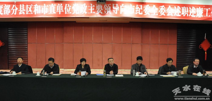 12月21日,天水市召开2013年度部分县区和市直单位党政主要领导向市纪委全委会述职述廉会议,8位县区和市直部门党政主要领导分别向大会作了述职述廉,并接受了现场评议、质询和满意度测评。