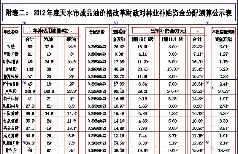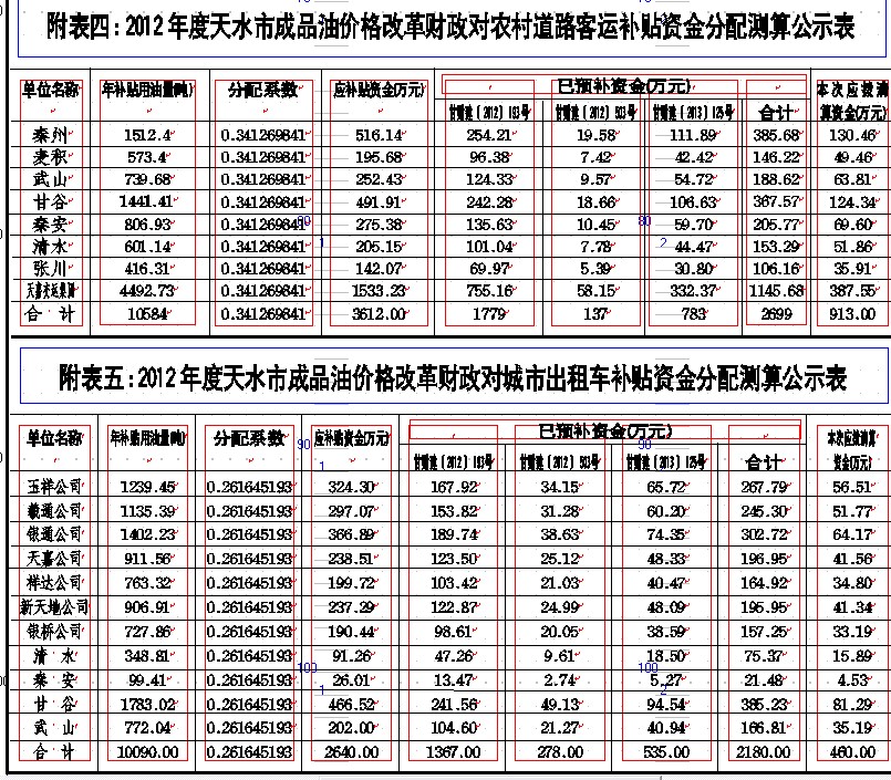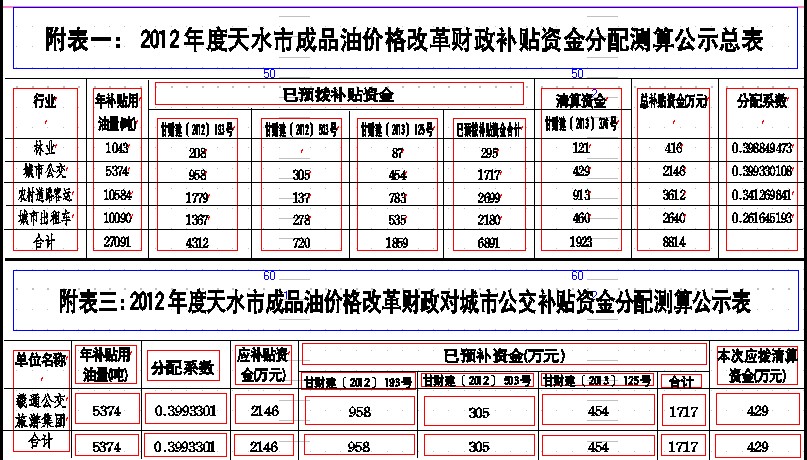 关于天水市2012年度成品油价格改革财政补贴资金分配清算方案的公示