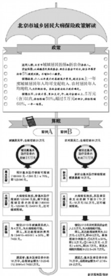 昨日,《北京市城乡居民大病医疗保险试行办法》对外发布,凡北京市城镇居民基本医保和新农合参保人,年度医疗费用超过指定额度,超出支出可按比例报销,且报销不设封顶线。2013年的大病今年即可报销,一年一结算。