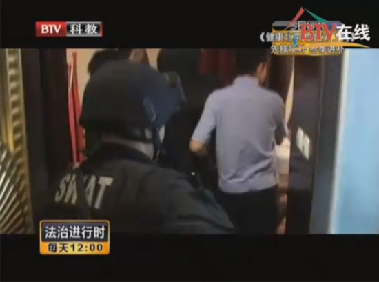 抓捕行动开始,警车前往洗浴中心。