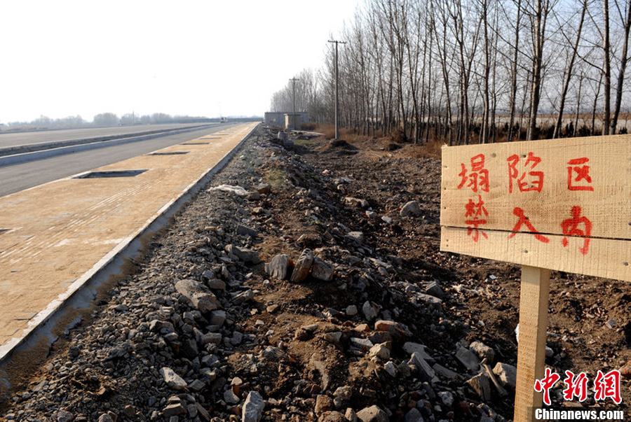 距离“天坑”300米远的在建道路已经停工。耿玉和 摄