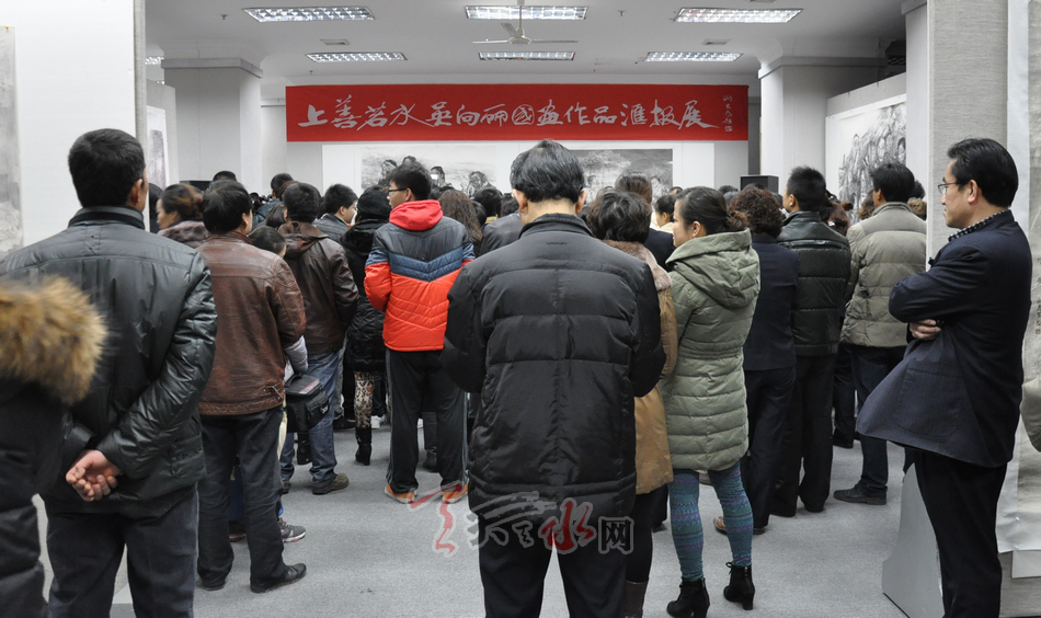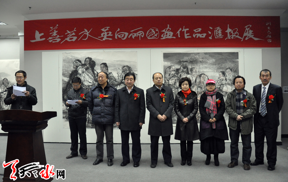 天天天水网讯(记者袁鹏辉)1月8日上午,由天水市文学艺术界联合会、天水市美术家协会、天水师范学院美术学院、天水书画院主办,中国国家国画院师生联谊中心、北京凤凰岭书院、金龙大酒店华夏艺术馆承办的“上善若水·迎新春刘大为精英班著名国画家吴向丽回乡汇报展”在天水金龙大酒店三楼华夏艺术馆开展。市委常委、宣传部长彭鸿嘉,副市长霍卫平,市政协副主席白晓玲出席开幕式并参观展览。