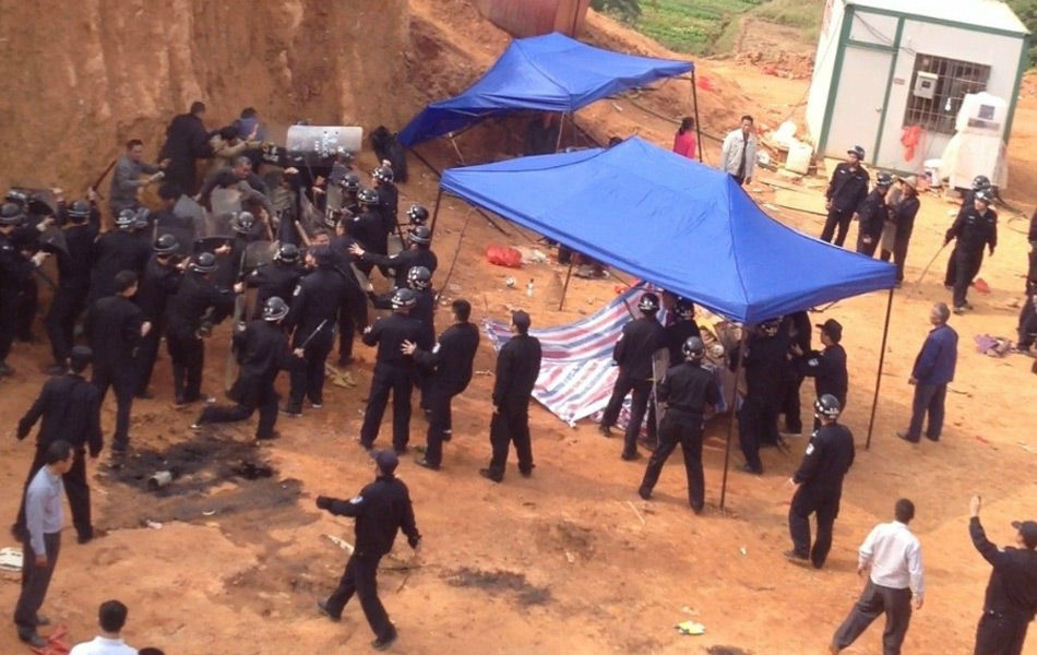 通报称,2日上午9时许,高州市宝光街道新塘村新屋、月塘、禾仓、新塘四个村小组组长和一名村民代表一行5人,来到宝光街道新塘村陈坑岭碧桂园房地产项目土方开挖现场,称用地权属不清,阻止施工方施工。施工方报警,高州市公安局河西派出所随即派员前往现场劝导。在施工方停止施工期间,禾仓村小组组长黄某友通过手机通知禾仓小组代表黄某贵到现场。