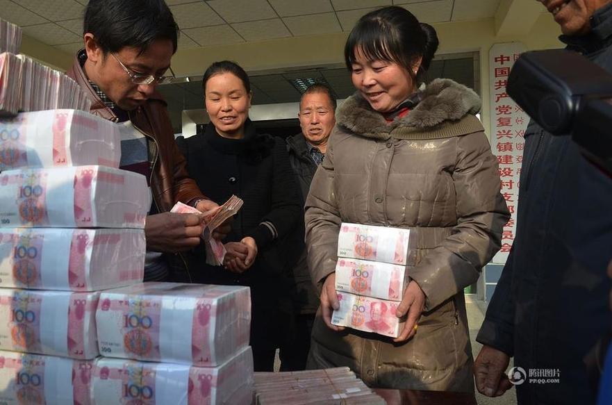 四川凉山州冕宁县复兴镇建设村村民,就盼来了他们的“年终奖”——村里种养殖合作社的分红,总金额1311.5万元。1月14日上午,凉山州冕宁县复兴镇建设村召开2013年分红大会,分红金额达1311.5万元。现场,重达312斤的人民币现金一捆捆整齐地放在台上,340余户入股村民排队领钱,最多的一户领到了30万元,最少的也有近万元。有村民说,数钱数到手都软了。(图/东方IC)