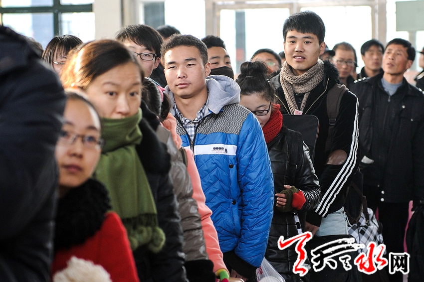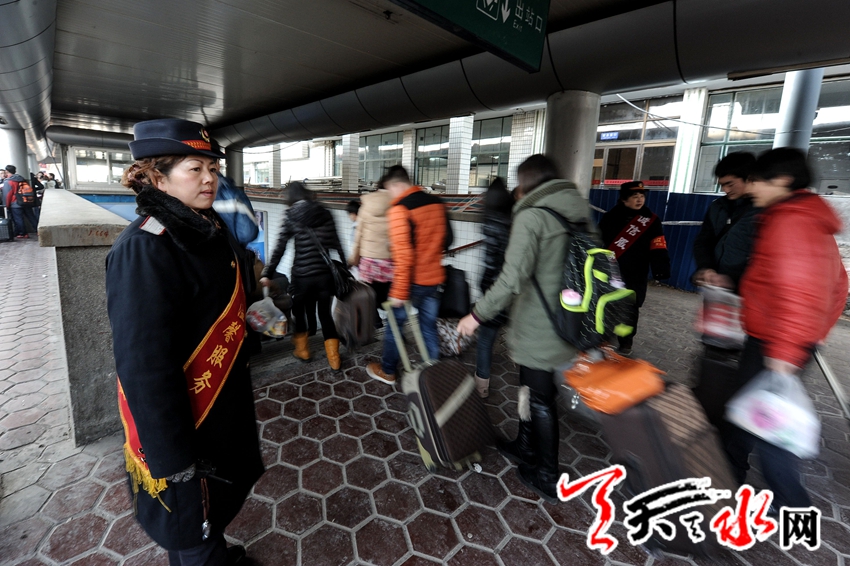 据了解,随着经济社会发展带动铁路客流持续增长。车站预计今年春运期间发送旅客40.8万人,较去年同期增长1.73%,日均发送1.02万人左右,逢农历双日客流将达到1.2万人左右,客流最高日预计达到1.3—1.5万人左右。2014年春运节前恰逢大专院校放假,学生、务工、探亲客流高度重叠,节后客流相对仍然比较集中。节前以江浙、广东、四川等地在西北经商、务工的返乡客流及探亲、学生、赴东南沿海旅游客流为主;节后以返校学生和北京、上海、广州、乌鲁木齐等方向务工客流为主。铁路运输能力仍难以满足春运高峰客流需求。2013年途径天水火车站新增兰州~北京西K630/29次1对直通旅客列车。
