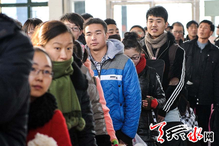 据了解,为期40天的春运大潮,天水火车站预计发送旅客40.8万人,较去年同期增长1.73%,日均发送1.02万人左右,逢农历双日客流将达到1.2万人左右,客流最高日预计达到1.3—1.5万人左右。客流特点:2014年春运节前恰逢大专院校放假,学生、务工、探亲客流高度重叠,节后客流相对仍然比较集中。节前以江浙、广东、四川等地在西北经商、务工的返乡客流及探亲、学生、赴东南沿海旅游客流为主;节后以返校学生和北京、上海、广州、乌鲁木齐等方向务工客流为主。