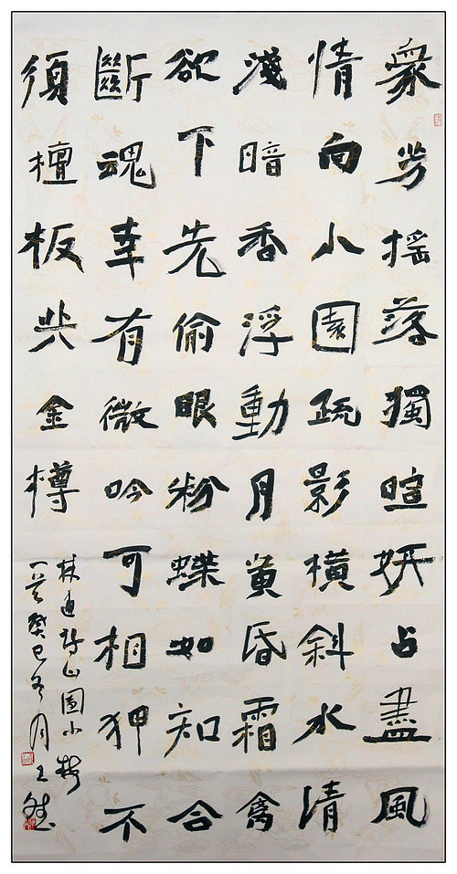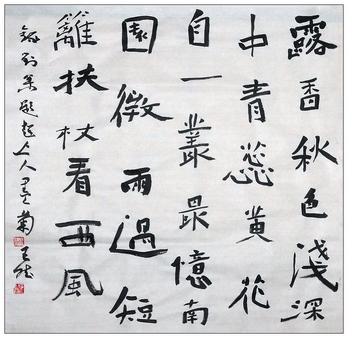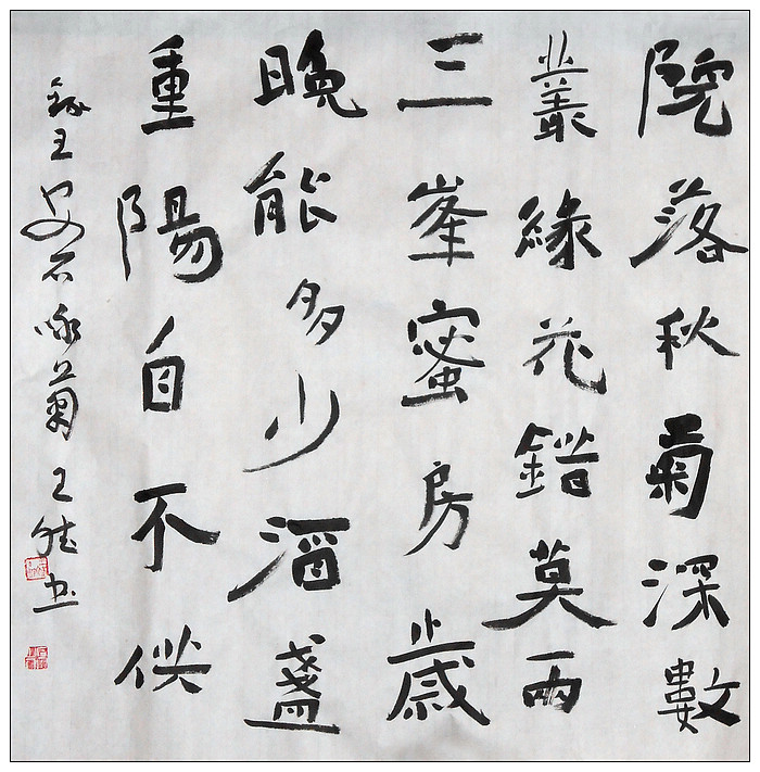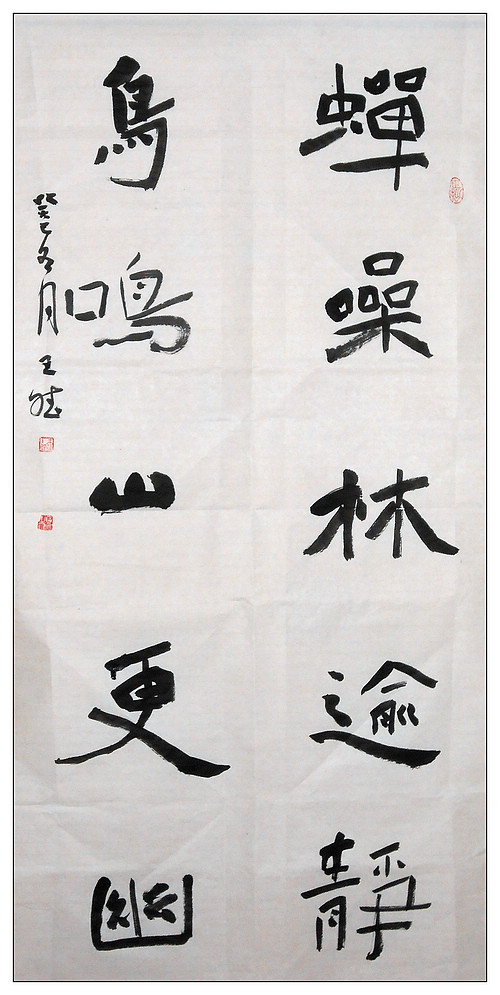 初学唐楷,后临北碑及晋人碑贴,书体以楷行为主,其中楷书取法张猛龙及龙门二十品,并掺以河北名家胡立民之笔意,形成了一种雄厚、古朴的艺术风格。