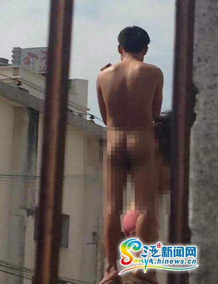 男子手里拿着一把菜刀,揪着一名半裸女子的头发,男子情绪异常激动,不停地挥舞手中的菜刀。