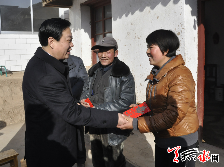春节就要到了,“双联”联系户的生活怎么样?还有哪些困难?带着对双联“亲戚”的牵挂,1月21日,中共天水市委副书记、市长杨维俊轻车简从,深入双联点秦州区中梁乡杨家山村、草胡村和甘谷县武家河乡武家河村,看望慰问“双联”联系户,了解他们的生产生活情况,给他们送去了慰问金,祝愿他们过一个欢乐祥和的春节。