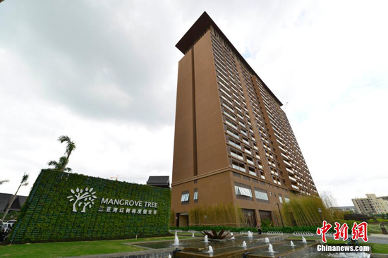 1月26日下午,记者拍摄的三亚湾红树林度假世界酒店正门的喷泉还不断翻涌。有媒体25日曝光三亚湾红树林度假世界酒店娱乐吧变“赌场”。中新社发 骆云飞 摄
