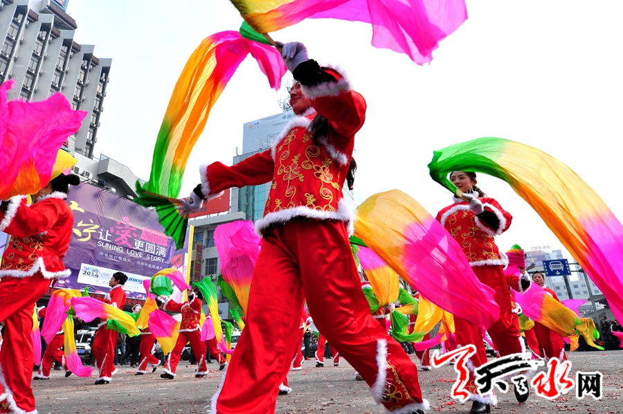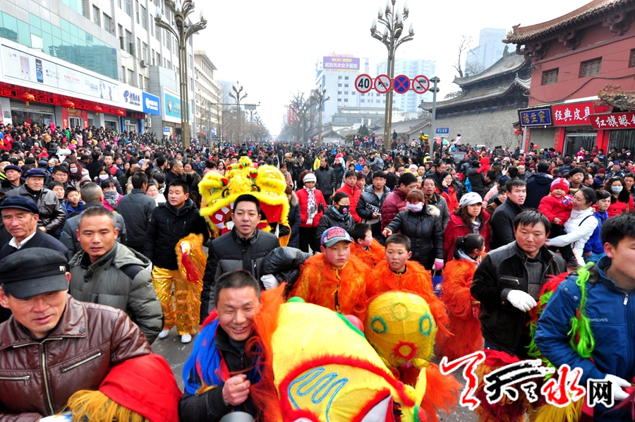 天天天水网讯【记者何永德】2014年2月11日(农历正月十二)古城天水共庆新春的热闹再一次被独具特色的本土民俗汇演——“社火”推向了高潮。