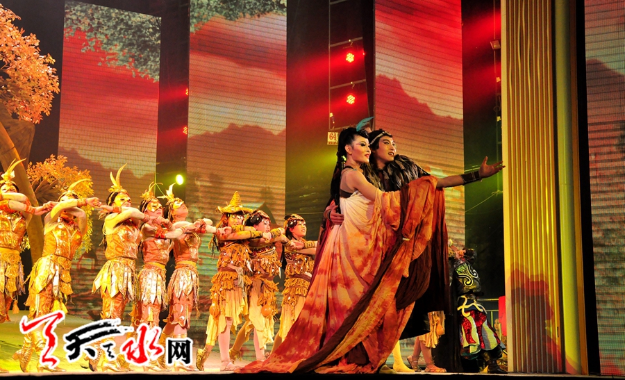 天天天水网讯:(记者何永德 ) 2月13日(农历正月十四)晚,作为2014年春节重点文化活动之一的大型中国舞剧《一画开天》给天水观众带来了一场视听文化盛宴的同时,也为春节文化活动增添了浓墨重彩的一笔。