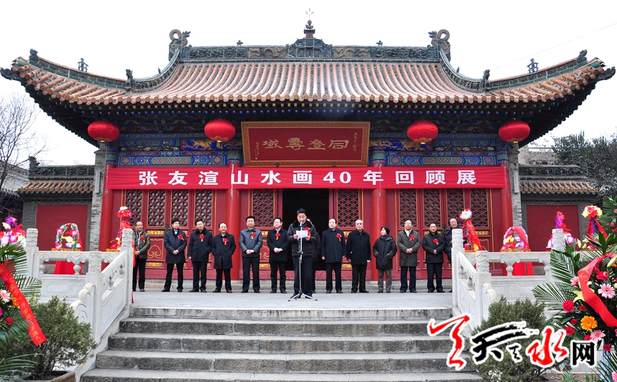 天天天水网讯:(记者何永德) 2014年2月15日上午,“日光七彩 融于一白——张友渲山水画40年回顾展”在天水美术馆隆重开幕。由天水市文联、天水市麦积山风景名胜管委会主办的此次展览,共展出张友渲先生40年来创作的精品力作100余幅。