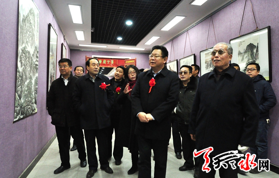 市领导赵建强、张建杰、安志宏、马武生以及天水社会各界和书画界人士出席并参观了展览。