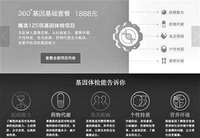 同时,一家名为360°基因的网站提供的125项基因检测的基础套餐价格为1888元。