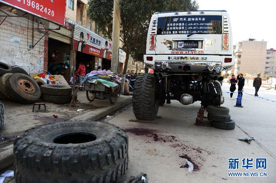 这是2月19日拍摄的事故发生现场。当日中午,位于昆明市红云路上的一家汽车轮胎经营部发生一起轮胎爆炸事件,导致1人死亡、1人受伤。目前,事故仍在进一步调查处理之中。新华社发(胡超 摄)