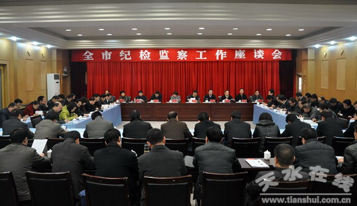 2月19日下午,天水市纪委召开全市纪检监察工作座谈会,会议就贯彻好省纪委三次全会精神,落实好市纪委六届四次全会部署的重点任务,对今年的工作作出了全面部署。市委常委、市纪委书记李美华出席会议并讲话,市纪委常务副书记李淳、市纪委副书记、监察局局长潘春久、市纪委副书记刘小平分别对各自分管工作进行了具体安排。会议由市纪委常务副书记李淳主持。