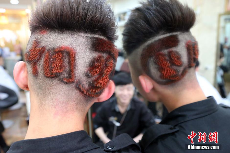 3月1日,在山西太原一美容理发店内,发型设计总监王剑特意给店内理发师设计了“中国梦”和“龙”两种造型来吸引顾客。明日为农历二月初二,也就是俗称的“龙抬头”,象征着春回大地、万物复苏,很多中国老百姓都有在这一天理发的习惯,希望新的一年能给自己带来好运气。图为顾客的“中国梦”和“龙”的创意发型。中新社发 张云 摄