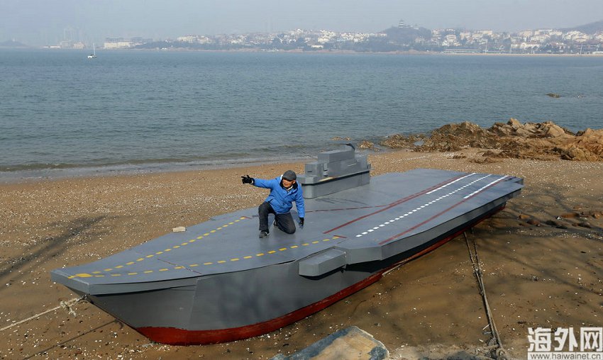 青岛8旬老人为孙子造缩小版“辽宁舰”模型