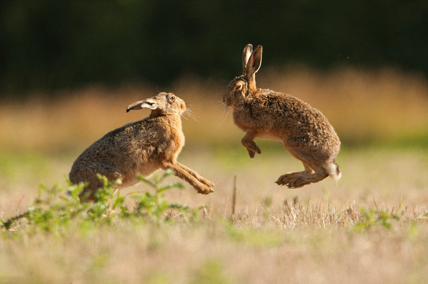 英摄影师偷拍嬉戏野兔击掌求偶