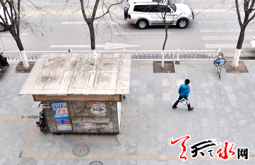 3月4日下午记者在秦州区住房和城乡建设局了解到,根据2013年6月8日天水市住房和城乡建设局与天水市城市管理综合行政执法局印发的《天水城乡环境综合整治实施方案》中“城市环境提升工程”第9条显示:取谛占道亭篷。对市区范围内的电话亭、蛋奶亭、帐篷等进行清理摸底,摸清产权单位,经营业主和审批部门及设置年限后,向相关产权单位和审批单位下发整改通知书,由责任单位自行拆除,对拒不拆除的依法强制拆除。据该局一工作人员讲,秦州区城区街道本身就显狭窄,尤其民主路,建设路和解放路人行道更为突出,部分经营者在经营范围上已超出了报刊,在夏天冰柜,烤肠等已摆在了人行道上,给市民的出行带来了极大的不便。