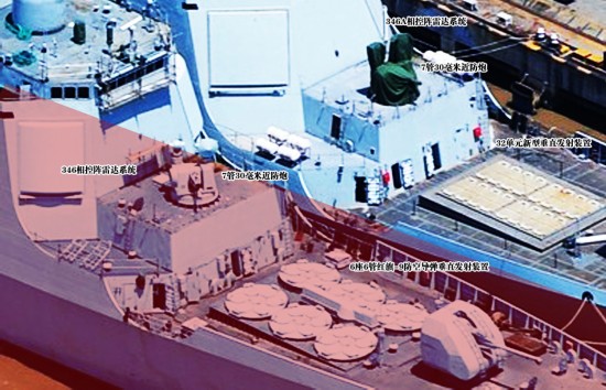 最近,国产052D型导弹驱逐舰与052C型驱逐舰垂直发射装置对比图纷纷曝光。据分析人士称,052C型导弹驱逐舰的前部6座6管红旗-9垂直发射系统,更换为052D型导弹驱逐舰的32单元新型垂直发射系统,后部两座6管红旗-9垂直发射系统和两座4联鹰击-62反舰导弹被32单元新型垂直发射系统代替,052D型导弹驱逐舰的载弹量相比052C提高了20%。(图片中红色区域为052C导弹驱逐舰,另一边为052D导弹驱逐舰)