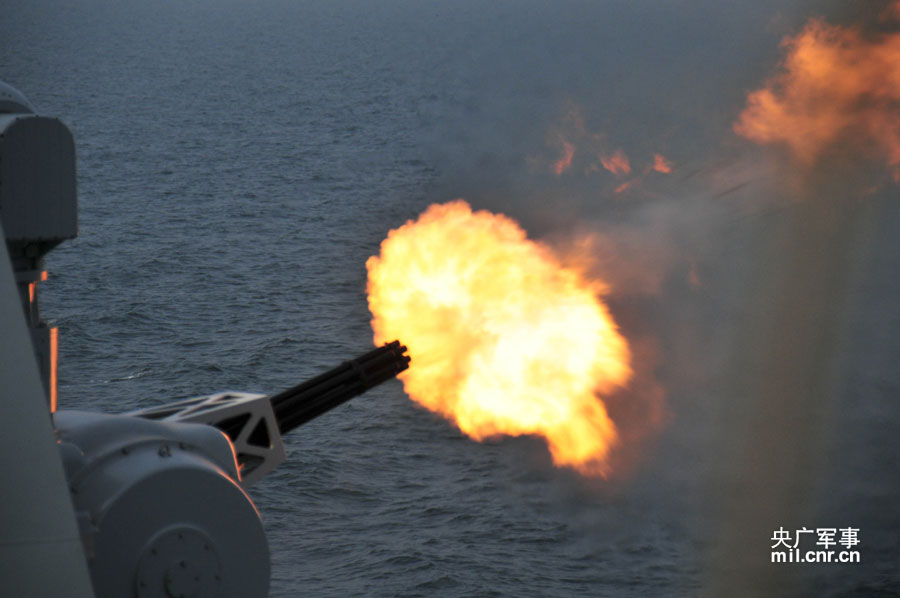 潍坊舰副炮射击 蓝明磊摄