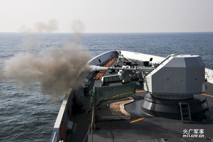 北海舰队两艘054A护卫舰海上展开实弹演练