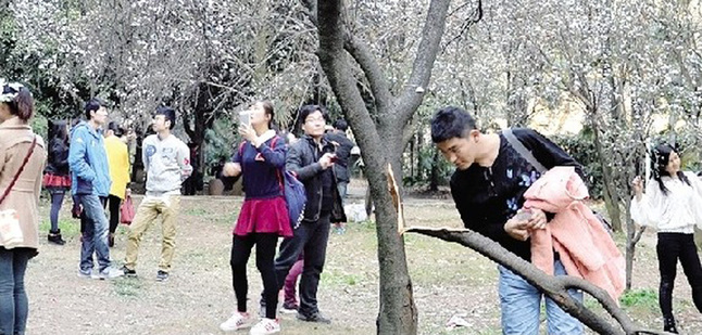 阳春三月,又到武汉大学樱花盛开之际。昨日,一些慕名而来的游客争先恐后来到珞珈山赏樱,不文明行为并不少见,一些游客随意采摘樱花,攀爬拍照,樱花节变成了“樱花劫”。