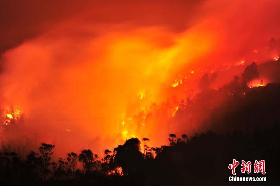 3月18日,四川凉山州西昌市经久乡马鞍村发生森林火灾,当地迅速组织167人(其中武警67人)采取直接扑打和开设隔离带相结合的方式展开扑救。国家森林防火指挥部已紧急调派两架直升机(1架米-26、1架卡-32)在火场实施吊桶灭火作业。火场林相为云南松、栎类和杂灌等,过火面积和起火原因正在调查。受火灾影响,西昌城区和礼州、月华、川兴、冕宁县漫水湾等乡镇出现大面积停电,经抢险人员紧急排查抢修,停电区域已逐步恢复供电。中新社发 蒋志明 摄
