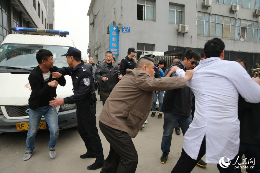 “医闹”围堵惠民医院大门,殴打医护工作人员。王虎/CFP