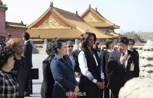 【彭丽媛:中国人讲究“家和万事兴”】故宫博物院院长单霁翔介绍说,故宫三大殿的殿名都取“和”字,体现了中国文化注重和谐。彭丽媛笑着对米歇尔说,中国人讲究“家和万事兴”。米歇尔点头赞同。