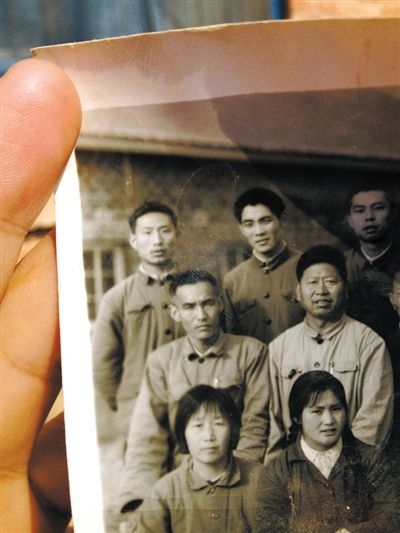 杨文彩(后排左一)生前照。26年前,因涉命案被警方审查,杨文彩后死在赵村乡派出所。警方认定其畏罪自杀。但家属怀疑他遭受刑讯逼供。新京报记者 刘刚 摄