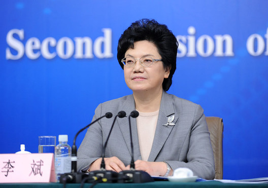 2014年3月6日(星期四)16时,十二届全国人大二次会议新闻中心在梅地亚中心多功能厅举行记者会,国家卫生和计划生育委员会主任李斌就“卫生计生事业改革发展”的相关问题回答中外记者的提问。图为卫生计生委主任李斌答记者问。新华网/中国政府网 翟子赫 摄