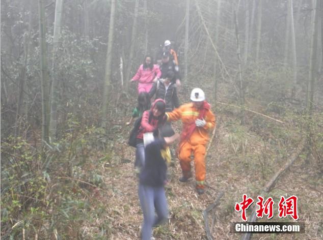 在事发现场,由于一早上阴雨绵绵,山里云雾缭绕。被困学生的手机信号时好时坏,救援人员很难找到被困学生的大致位置。陈乃国 摄